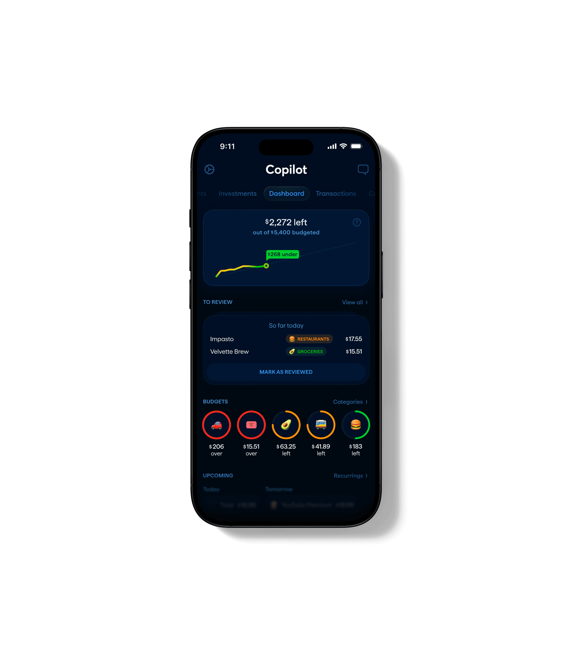 The Best Budgeting App!! Copilot has been a magical experience so far. They’ve innovated the experience of budgeting - it helps keep you informed, but the right things are automatic and effortless. You can choose how manual you’d like it to be - or how much you’d like the app to do the work for you. They’ve solved most of the gaps from mint - and it’s easy to get a budget set up. PFM has been over complicated for too long but Copilot has done a great job of making it easy.